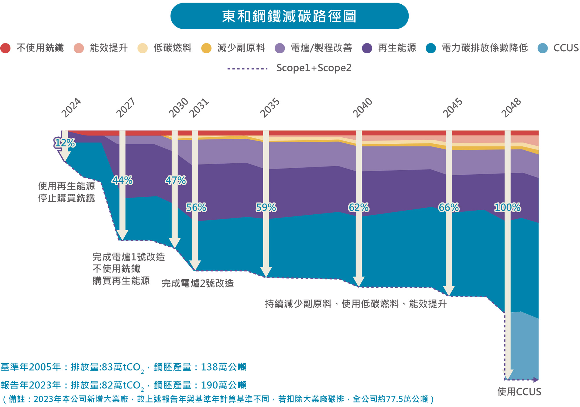 在傳統(tǒng)鋼鐵生產(chǎn)過程中,銑鐵是不可或缺的原材料,但其在原料-鐵礦砂開採提煉階段所排放的溫室氣體較廢鋼高出許多,因此,投入不使用銑鐵的生產(chǎn)技術(shù)研究和開發(fā),是鋼鐵產(chǎn)業(yè)生產(chǎn)低碳鋼材的重要選項。因此在煉鋼技術(shù)上可以克服完全不使用銑鐵的基礎(chǔ)之下,本公司將找尋其他可替代之廢鋼種類,於2023年起不再採購銑鐵,預(yù)估庫存於2026年使用完畢,2027年以後不再使用銑鐵作為電弧爐煉鋼之原料。透過不使用銑鐵的生產(chǎn)技術(shù)創(chuàng)新,標誌著鋼鐵行業(yè)邁向更環(huán)保及永續(xù)的未來。