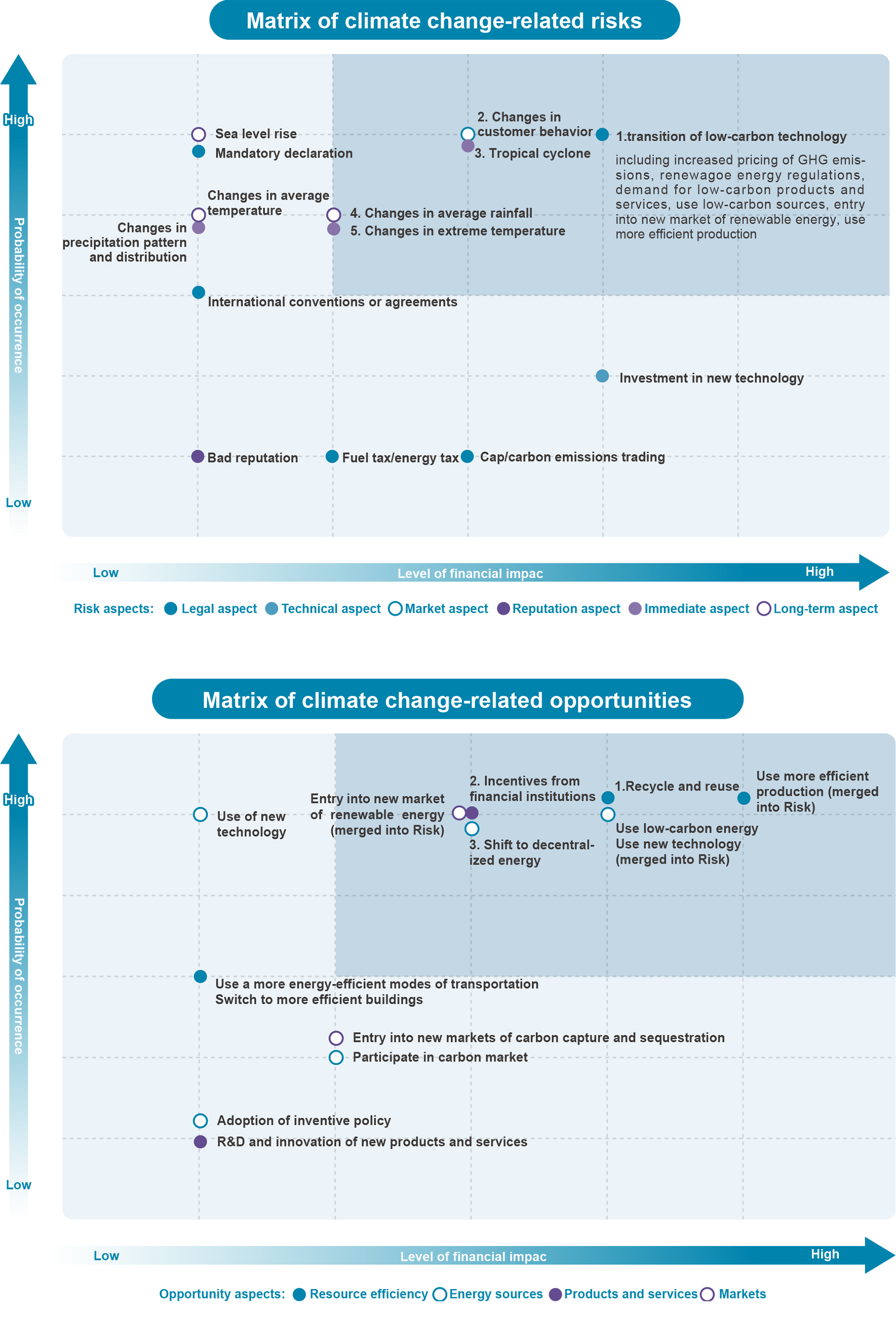 The matrix of identified climate change-related risks and opportunities is as follows.