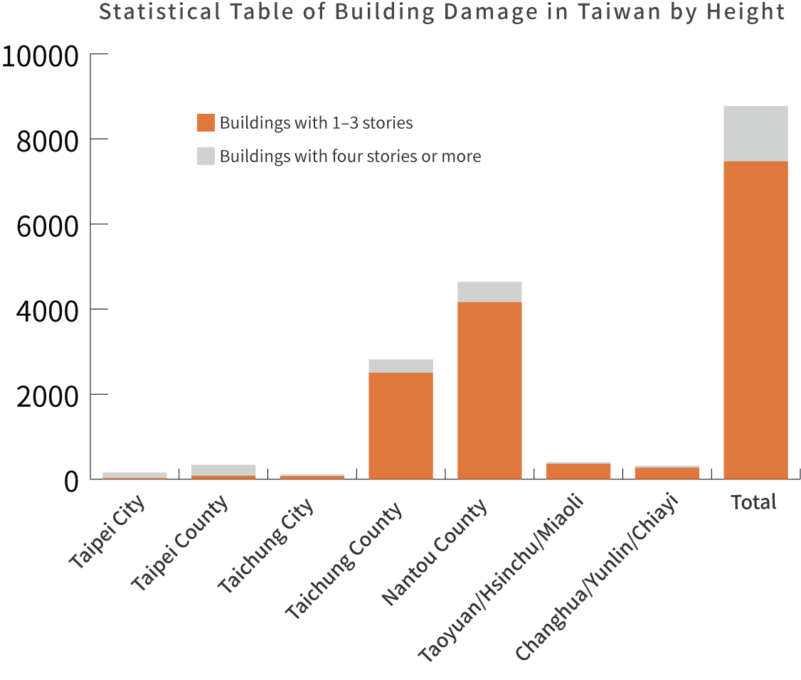 When an earthquake occurs, we always intuitively believe that shorter buildings are safer and that they are more earthquake-resistant than taller buildings. However, according to the disaster report issued by the National Center for Research on Earthquake Engineering, in the 921 Earthquake, low-rise buildings were damaged the most, and accounted for approximately 85% of all buildings damaged.
