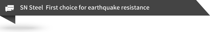 SN steel is characterized by being strong, resilient, and by having good weldability. Compared to steel of other specifications, it is the steel most able to withstand earthquakes and is the earthquake-resistant building material stipulated by the government in Japan after the Hanshin Earthquake.