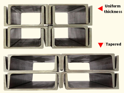 1. Wing plates and other parallel flange channels (PFC): Because the wing plate cross-sectional area is increased, the channel steel cross-section modulus is improved. Therefore, these can provide greater cost-effectiveness compared to wing plate tapered channel beams.