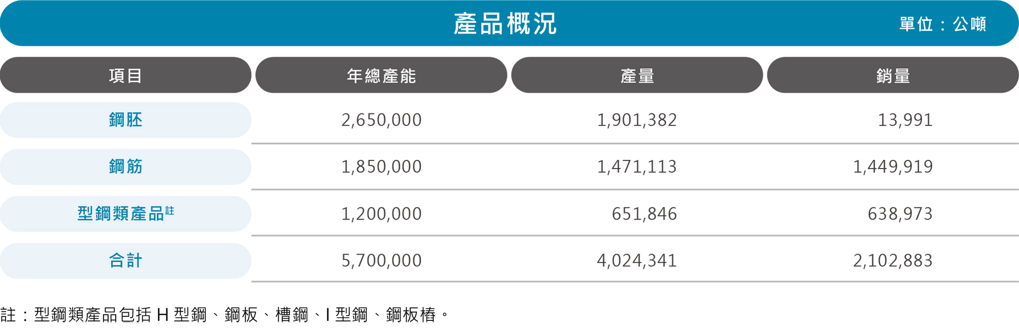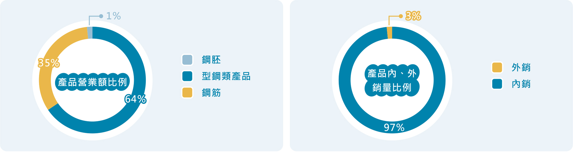 本公司主要產(chǎn)品為鋼筋、型鋼及鋼板,主力提供臺(tái)灣本島及離島之建築營(yíng)造市場(chǎng),服務(wù)遍及營(yíng)造業(yè)、建設(shè)業(yè)、鋼筋盤商(加工業(yè))、貿(mào)易商及協(xié)力廠商(如運(yùn)輸公司)。2023年鋼筋以內(nèi)銷為主;型鋼內(nèi)銷佔(zhàn)91.31%、外銷8.69%,主要銷往澳洲和紐西蘭等國(guó)家;無(wú)被禁止銷售之情事發(fā)生。