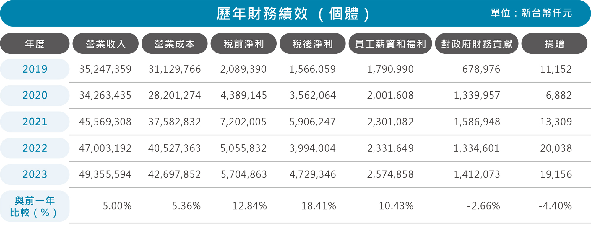 面對(duì)外在環(huán)境的瞬息萬(wàn)變與挑戰(zhàn),本公司透過定期的目標(biāo)管理會(huì)議,精進(jìn)內(nèi)部管理、降低成本、投入研發(fā)、創(chuàng)新技術(shù),以提升經(jīng)營(yíng)績(jī)效,使整體營(yíng)運(yùn)、獲利穩(wěn)定成長(zhǎng),為股東創(chuàng)造價(jià)值,善盡社會(huì)責(zé)任。經(jīng)營(yíng)團(tuán)隊(duì)戮力落實(shí)營(yíng)運(yùn)發(fā)展策略,除持續(xù)提升生產(chǎn)技術(shù)及健全管理制度外,透過產(chǎn)銷購(gòu)體系的協(xié)調(diào)、統(tǒng)合運(yùn)作,以期強(qiáng)化競(jìng)爭(zhēng)優(yōu)勢(shì),並積極拓展國(guó)外新市場(chǎng),追求永續(xù)經(jīng)營(yíng)之目標(biāo)。