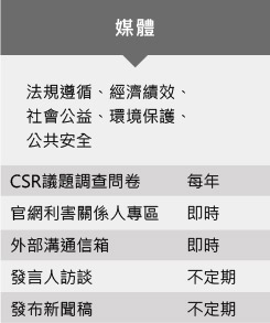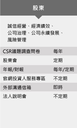 東和鋼鐵重視利害關(guān)係人之權(quán)益與意見,對利害關(guān)係人設(shè)有公開、直接之溝通管道,除提供東和鋼鐵在企業(yè)社會(huì)責(zé)任管理的相關(guān)資訊,更藉了解利害關(guān)係人所關(guān)切的議題,持續(xù)檢視及改善企業(yè)社會(huì)責(zé)任的績效。