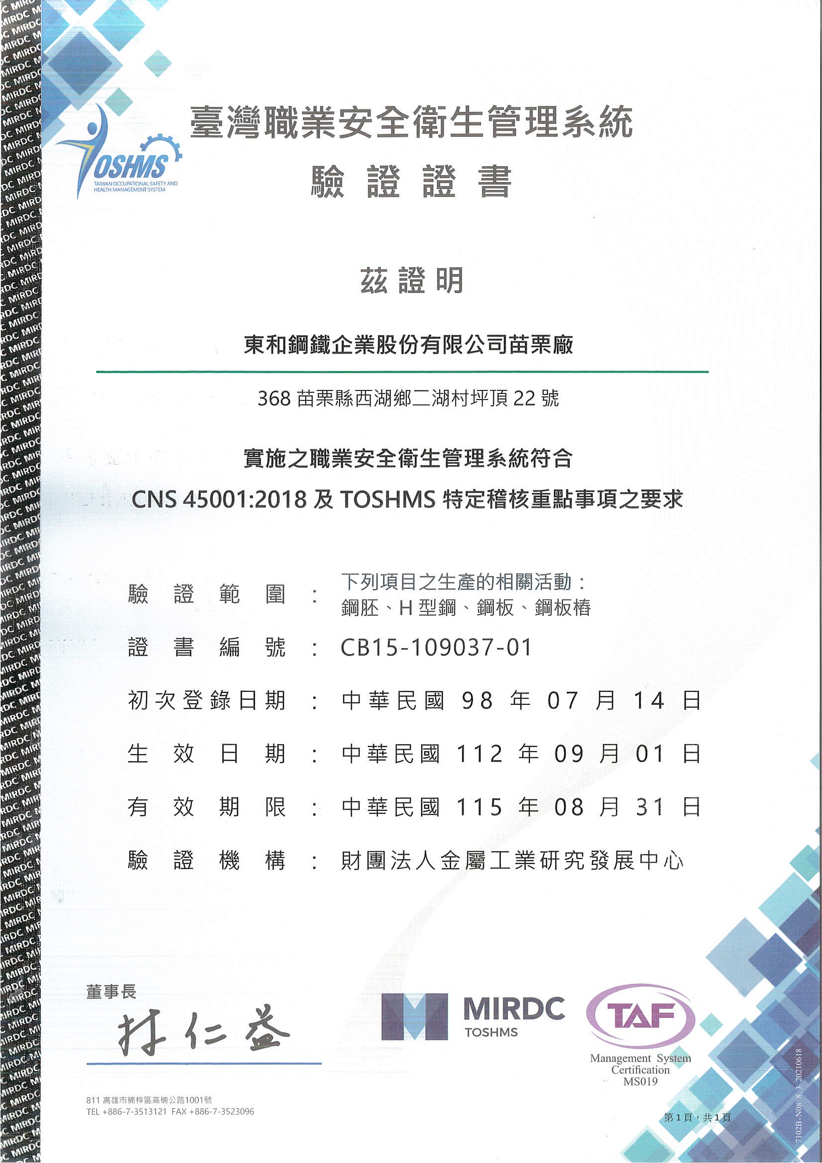 東和鋼鐵企業(yè)股份有限公司版權(quán)所有 Copyright ? 2006