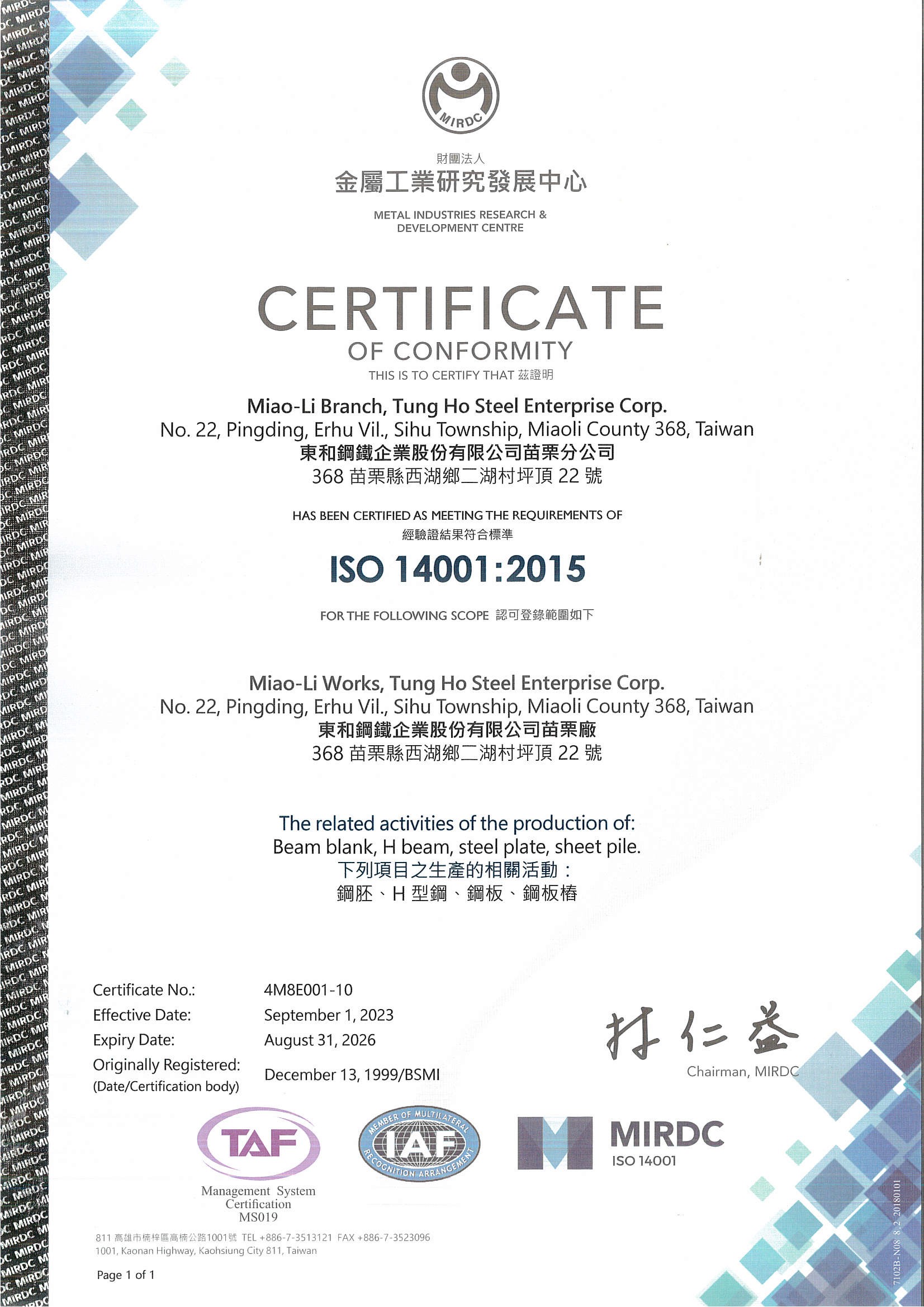 TUNG HO STEEL ENTERPRISE CORP. All Rights Reserved