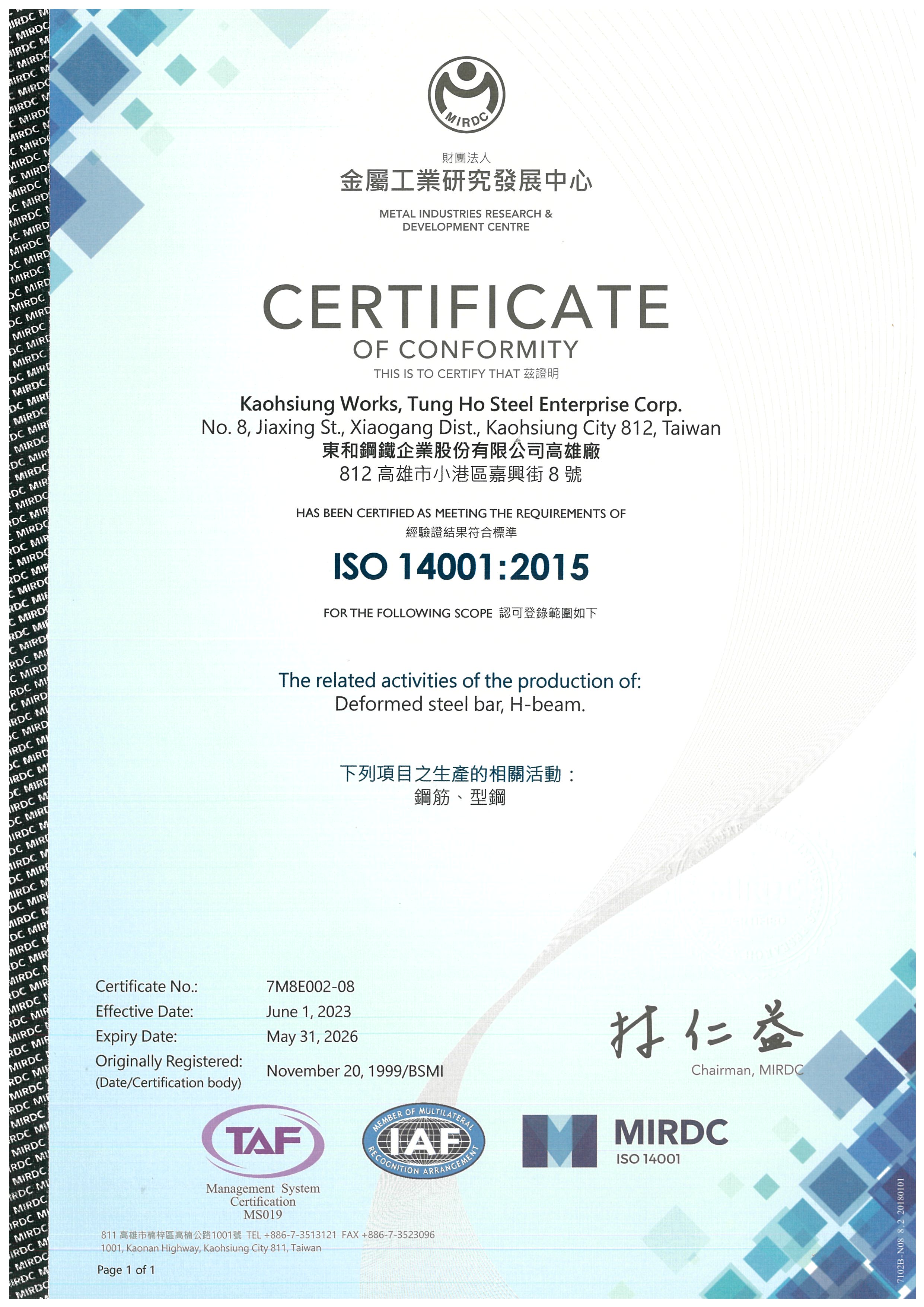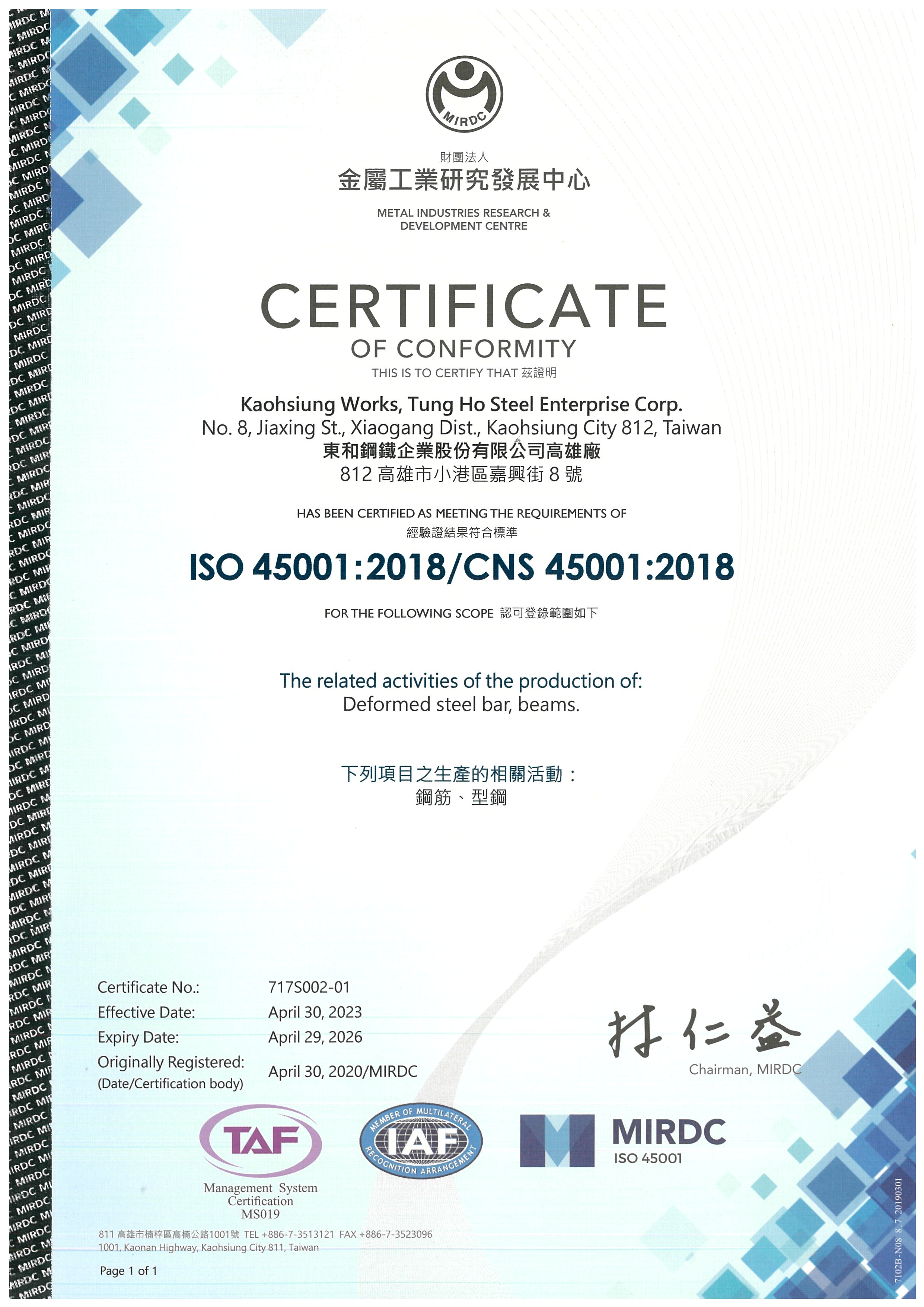 ISO 45001 : 2018 - 職業(yè)安全衛(wèi)生管理系統(tǒng)驗(yàn)證證書ISO 45001 2018 CNS45001 2018中英文版證書_1120430~1150429(1).pdf -