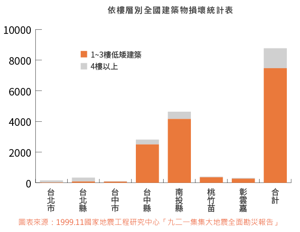 當(dāng)?shù)卣饋?lái)臨時(shí),我們總是直覺地認(rèn)為低矮建築比高樓建築要來(lái)得更安全、耐震,但根據(jù)「國(guó)家地震工程研究中心」所釋出的勘災(zāi)報(bào)告指出,在921地震中以低矮建築損壞最多,約佔(zhàn)所有損壞建築物之85%。