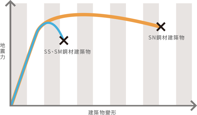 所以在建材上,選擇專門為耐震建築研發(fā)的「SN鋼材」最為適合!